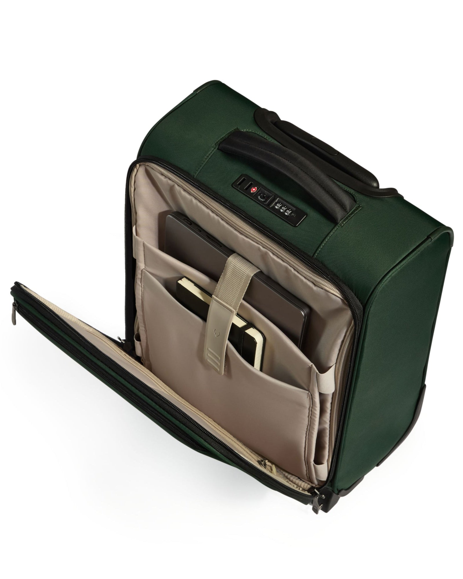 Introducing the Underseat Cabin, our compact companion for frequent travelers. Part of the Soft Stripe family, made with recycled polyester, this miniature case offers efficient and durable storage for overnight trips and weekend getaways. Stay organized with the double-layered front pocket and adjustable handle for easy access and smooth mobility.