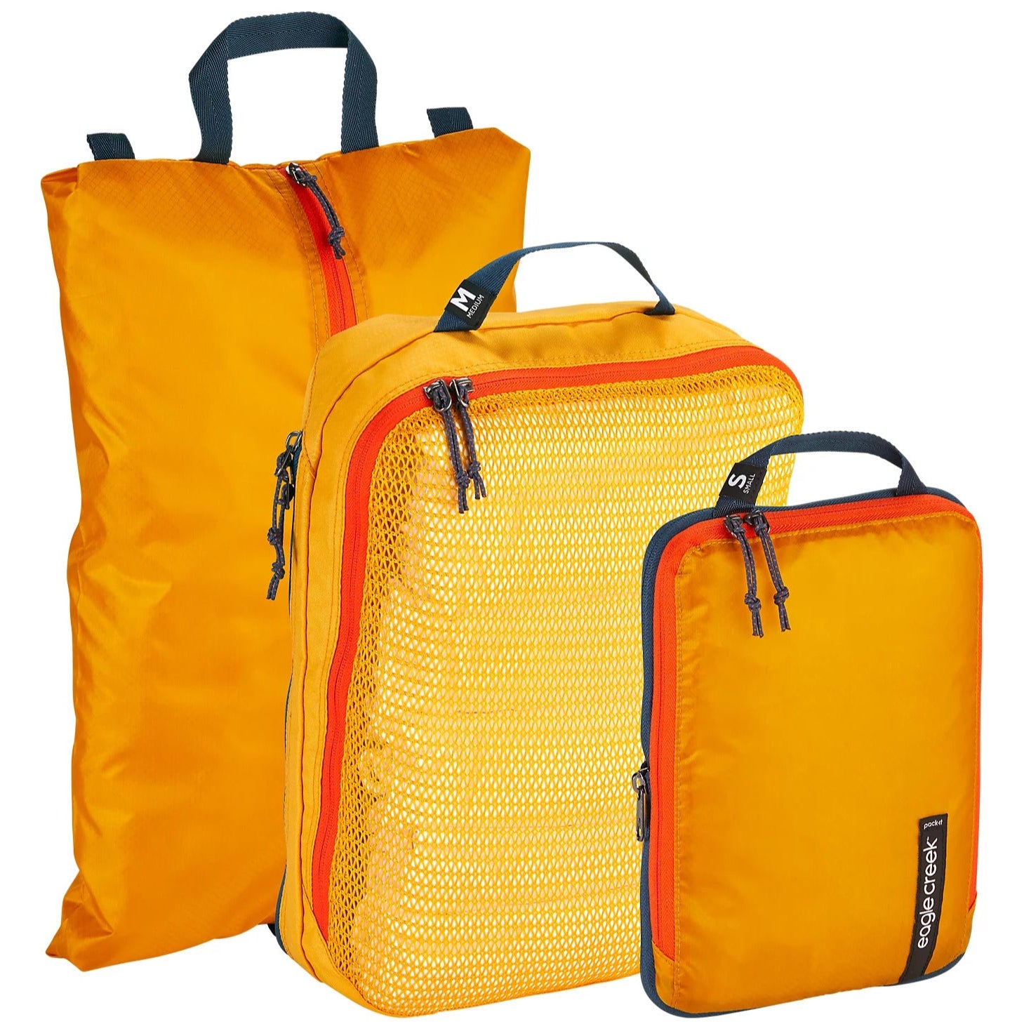 - This packing set is a great starter set for any globetrotter looking to perfectly pack up their carry-on. It’s got an organizer for dirty shoes, medium-sized cube for clean/dirty items, and a small compressor to maximize your packing space.