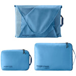 Organize clothing and arrive unwrinkled with the Pack-It® Starter Set. A compressible garment envelope and folding board make it easy to crease and pack collared shirts and dresswear. The two packing cubes shrink rolled or folded items into space-saving parcels. All fabrics are water-resistant and 100% recycled.