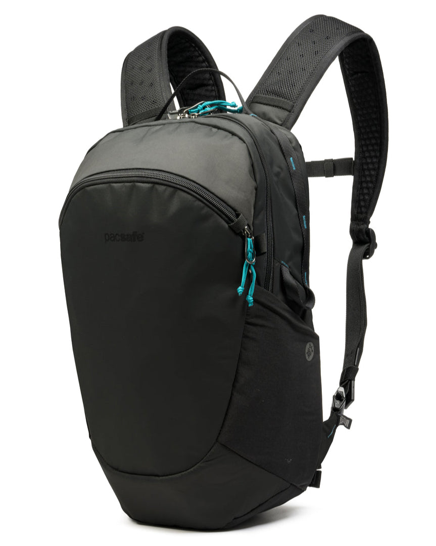 The Pacsafe ECO collection is our most sustainable collection yet by using almost 100% recycled materials and components. When you need something compact yet spacious for a day trip or hike, this 18L backpack is your new go-to. The lightweight design has plenty of room with multiple pockets and compartments to organize your essentials. Other features include a breathable mesh panel that is ergonomically designed to support your back and to create excellent airflow to keep you dry. The ergonomically-designed shoulder straps offers better support and carrying comfort. Stay hydrated on the move with two large water bottle pockets and a compartment for a water bladder or laptop. Made with 10 recycled plastic bottles, which were used in the lining, mesh, webbing, and labels. The outer shell fabric and certain buckles were made with ECONYL® regenerated nylon, which comes from waste such as discarded fishing nets, fabric scraps, carpets and industrial plastic.