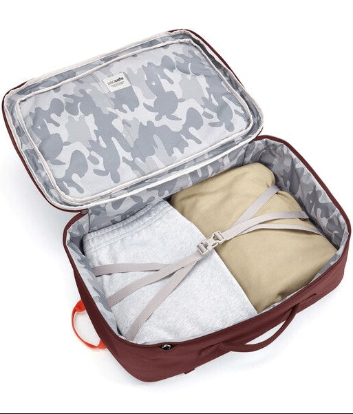 - Front pocket fits A4 sized travel binder or organizer for important documents