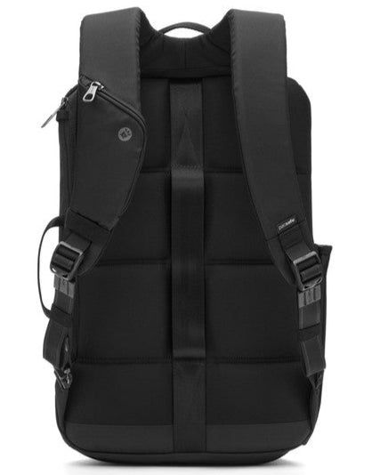 The slim profile allows for easy movements through busy areas such as subways, city streets, and the airport, making it the perfect companion for city dwellers and commuters. The 18L capacity of this anti-theft backpack holds more than you think, with separate padded compartments for a 16" laptop and 11" tablet, and several internal pockets for your gadgets, cables, and on-the-go gear. The unique sideways wide opening also makes it very easy for you to access your belongings with minimal hassle. Not only is the bag packed with function, it's packed full of Pacsafe security features.