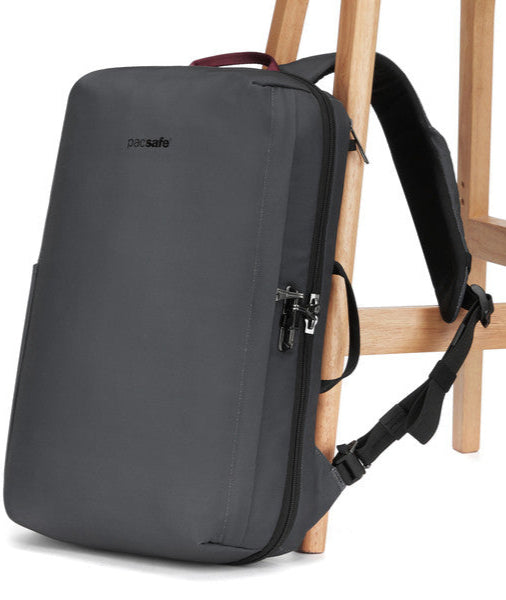 The slim profile allows for easy movements through busy areas such as subways, city streets, and the airport, making it the perfect companion for city dwellers and commuters. The 18L capacity of this anti-theft backpack holds more than you think, with separate padded compartments for a 16" laptop and 11" tablet, and several internal pockets for your gadgets, cables, and on-the-go gear. The unique sideways wide opening also makes it very easy for you to access your belongings with minimal hassle. Not only is the bag packed with function, it's packed full of Pacsafe security features.
