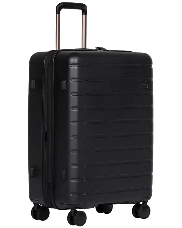 Stamford’s robust yet lightweight polycarbonate shell has a smooth, matt surface, making scratches less visible. A removable packing divider with a pocket sits under compression packing straps to help prevent creasing and keep clothes flat, whilst an expander zip on the case adds 5cm space. A TSA-approved combination lock keeps treasures safe.