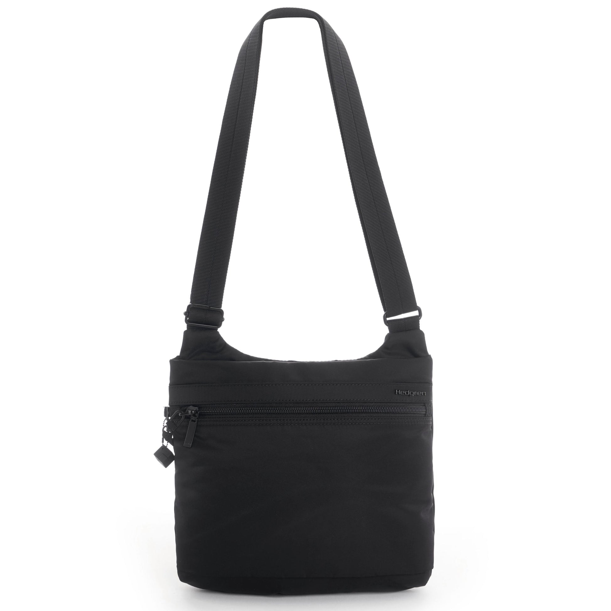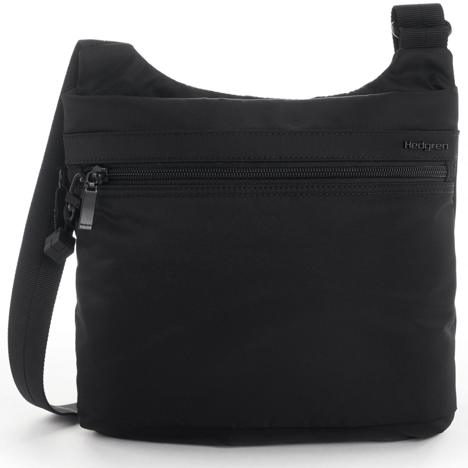 A compact flat crossbody bag featuring plenty of pockets to keep your contents organised and safe, including a zippered back pocket for easy access. This lightweight bag also features a secure locking hook for the main compartment zipper. The shoulder strap is adjustable to your desired length and Hedgren’s fabric is treated with a water and dust repellent coating.
