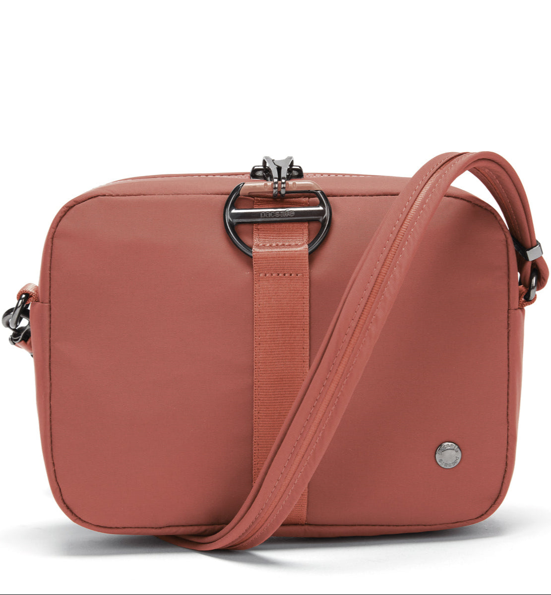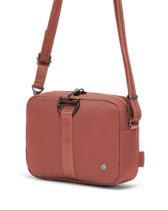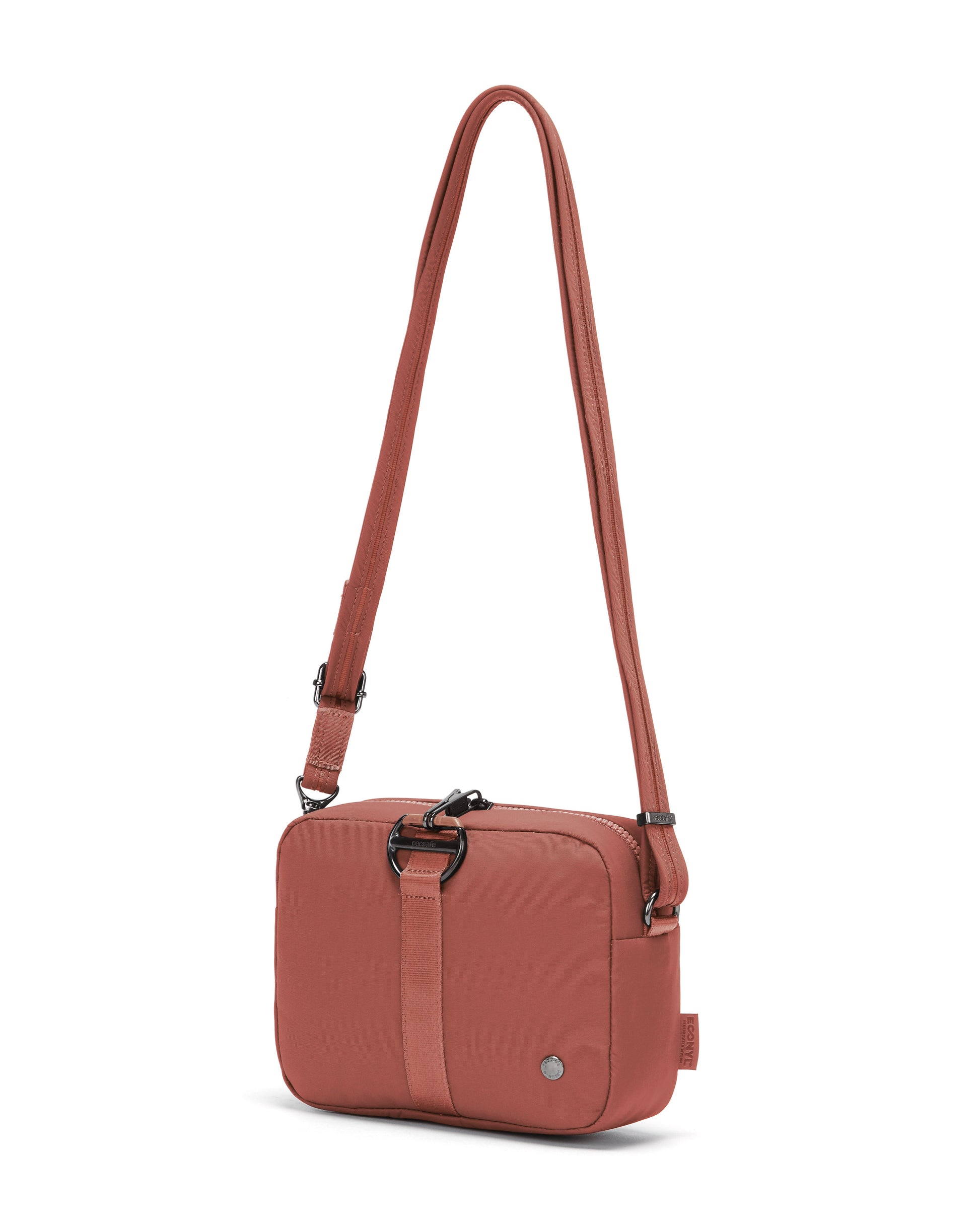 A ready-for-anything, anti-theft crossbody that combines fashion and function for a 24/7 life. Featuring a clasp locking system, RFIDsafe™ pockets, and an attachable security strap, it’s perfect when traveling or as an everyday purse. Made with ECONYL® regenerated nylon.