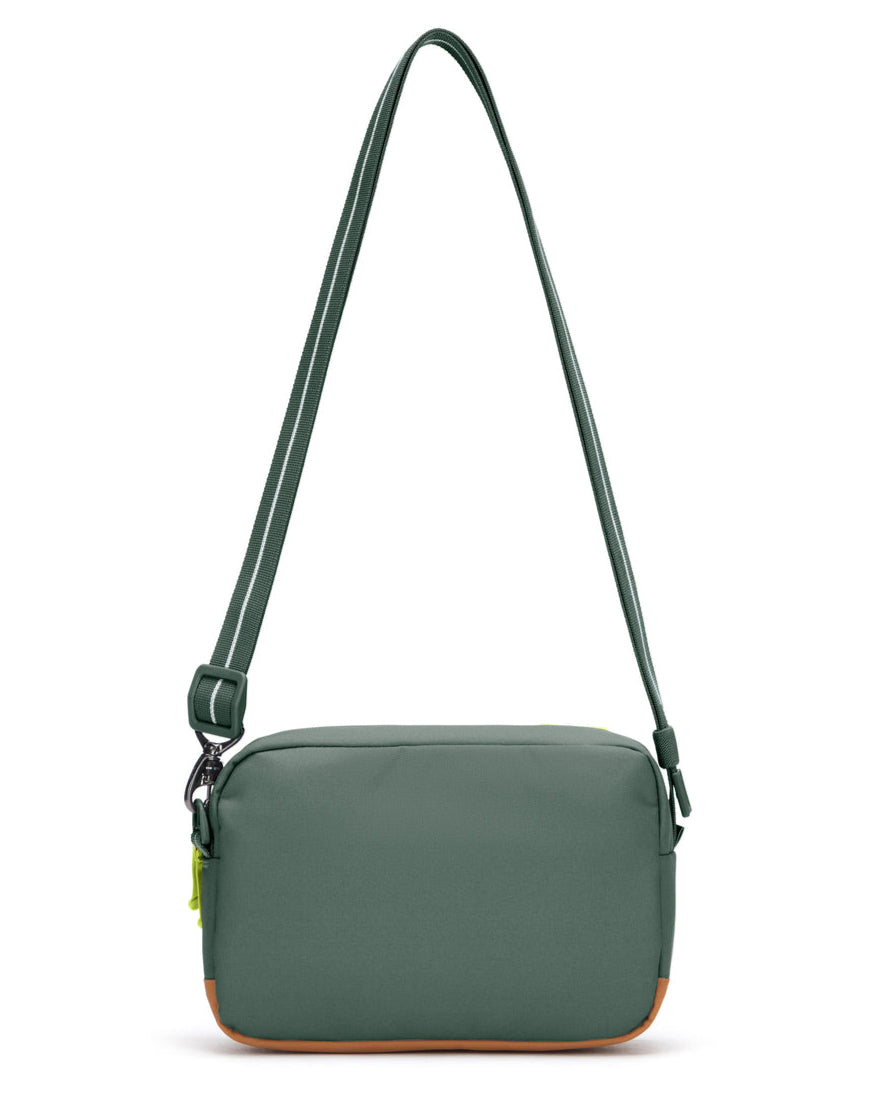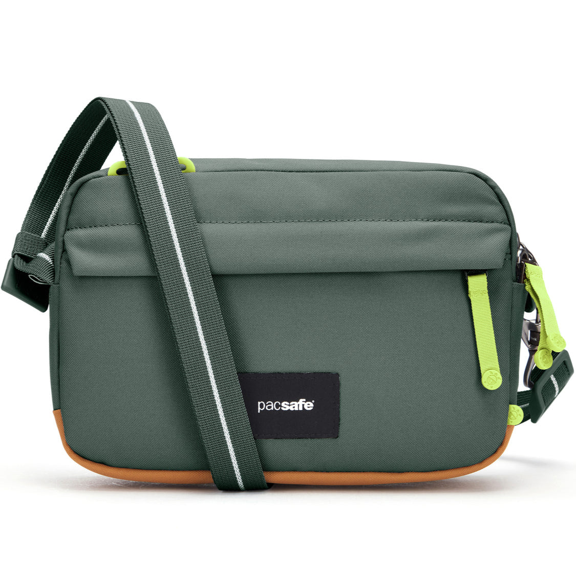 This compact crossbody goes with any outfit and carries all the essentials—phone, wallet, sunglasses and even a 7-inch tablet – making it a perfect on-the-go option. This crossbody features cut-resistant materials and strap, securable zippers, and an RFID blocking pocket. Our GO collection unlocks adventure and possibility with anti-theft security and effortless function. Made from 7 recycled plastic bottles.