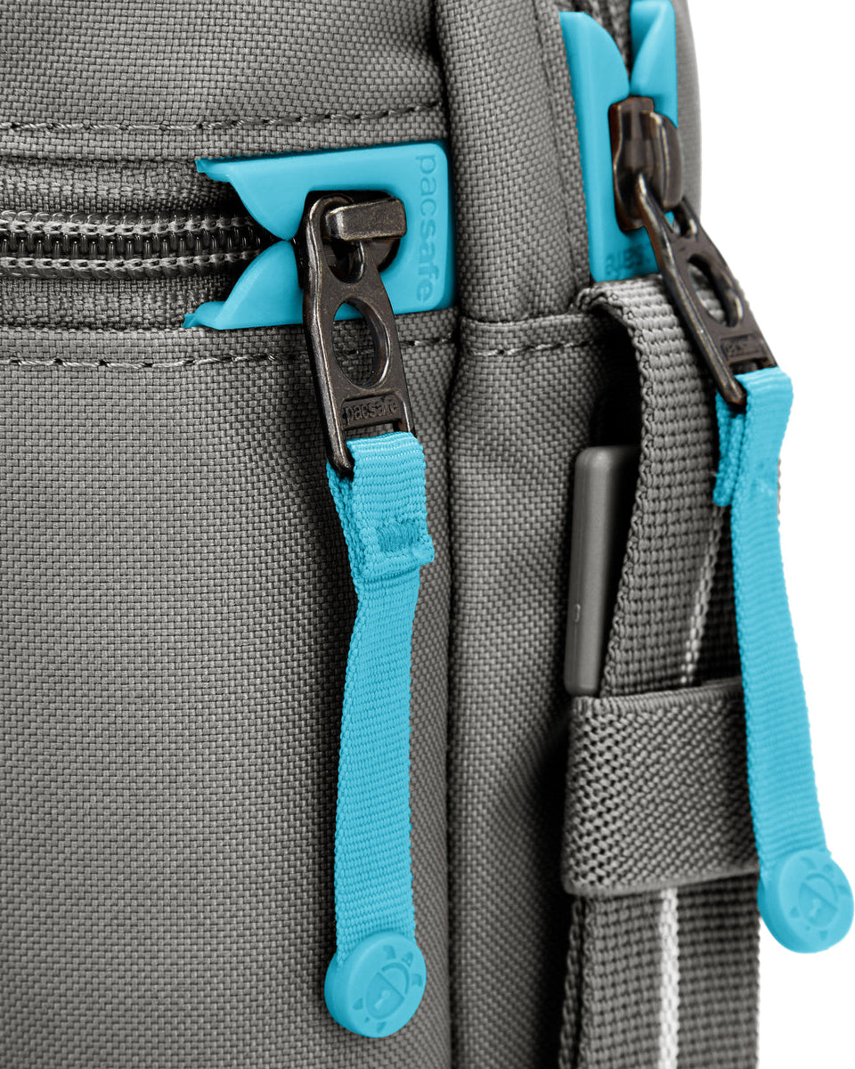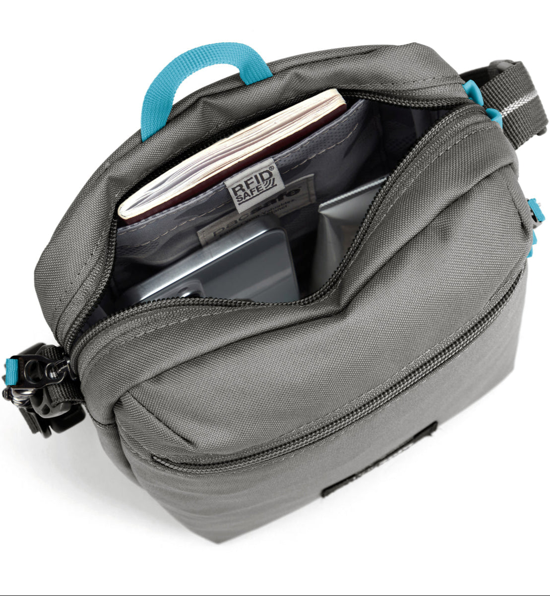 The Pacsafe Go Anti-Theft Festival Crossbody checks all the boxes for a must-have crossbody bag, whether it's for exploring a new city, dancing at a music festival, or café hopping in town. With two spacious compartments for easy organization, this bag can easily store a phone, wallet, portable charger, headphones, eBook reader, and more. Enjoy every moment without having to worry about your valuables as this crossbody features the hassle-free Dock Lock anti-theft feature, a cut-resistant strap, RFID-Blocking pocket and more. This product is made with post-consumer recycled polyester (rPET), equivalent to 6 recycled plastic bottles.