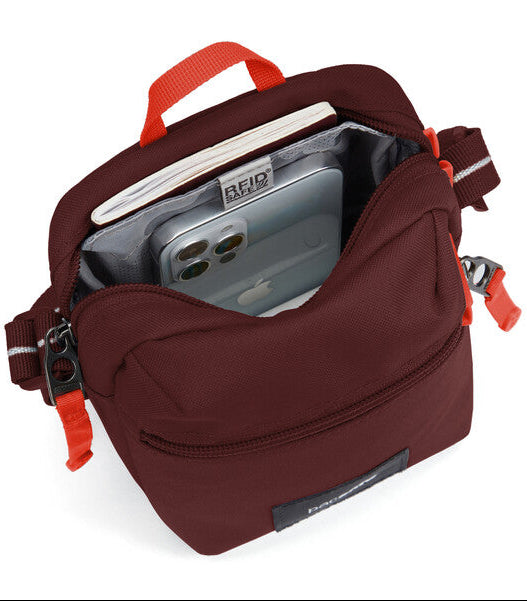 For those moments you prefer going hands-free with just the essentials, this micro-size crossbody will fit just that. This compact crossbody has two perfectly sized compartments that will fit your phone, wallet, keys, sunglasses, and AirPods. It's all secured with easy lockable zippers, an RFID-blocking pocket, and a cut-resistant strap to help protect your valuables while you're on-the-go. This product is made with post-consumer recycled polyester (rPET), equivalent to 5 recycled plastic bottles.
