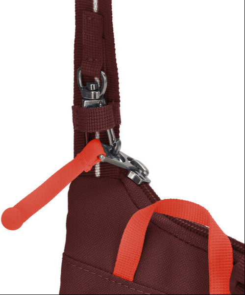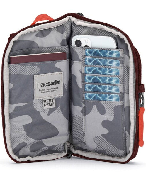 Keep your important belongings close to your body for stress-free travels. Designed to be sleek, this crossbody with built-in wallet can hide discreetly under a jacket. Keep your passport, boarding pass, credit cards, and cash in the main compartment, which can be locked using the simple zip clip. The quick-access front compartment is perfect for your phone and other essentials, and can be secured using the easy and fast zip tab. This product is made with post-consumer recycled polyester (rPET), equivalent to 4 recycled plastic bottles.