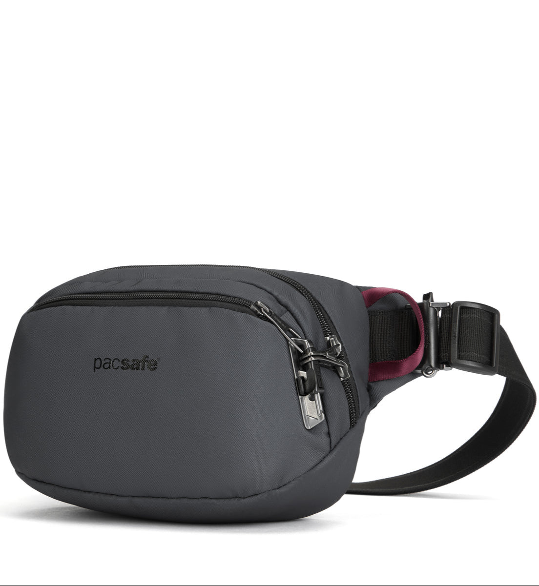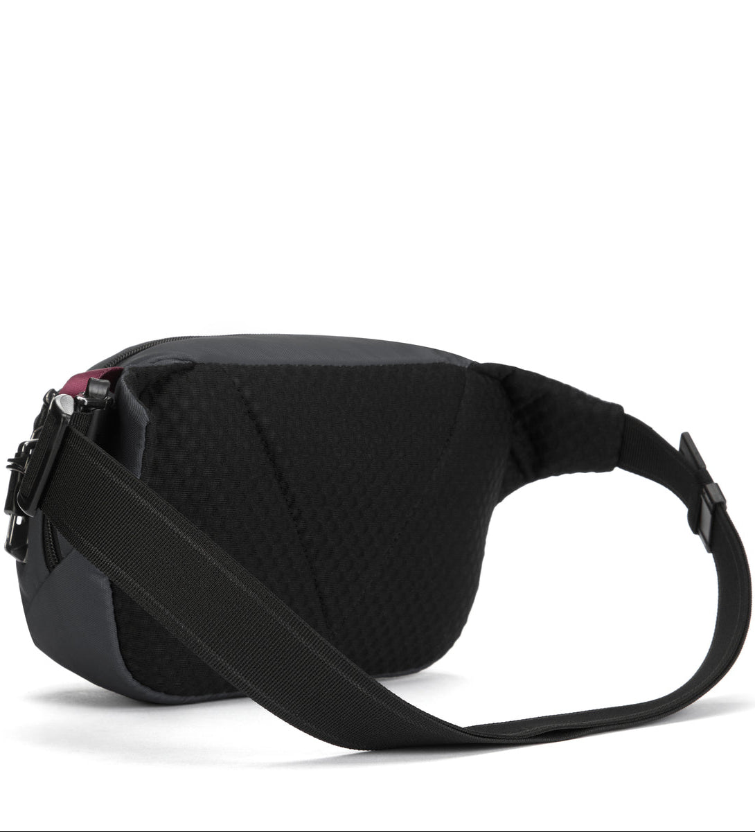 A hip pack for those who are always on the go. Pack in your wallet, keys, phone and even a 7in tablet, all with quick access and protection for your valuables via lockable zips and cut-resistant materials. Made from recycled PET for sustainability.