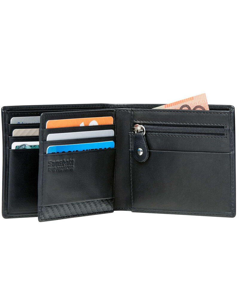 Samsonite RFID blocking wallets protect payment and identity fraud from unwanted skimming of your credit cards and other contactless credit/identity cards. The range incorporates an internal layer of metallic material which is placed in between the outer layer of leather and internal lining. Made from cow finished leather. • Providing both data protection and transaction security • Retains control of your credit cards information at all times • Reduces the risk of fraud