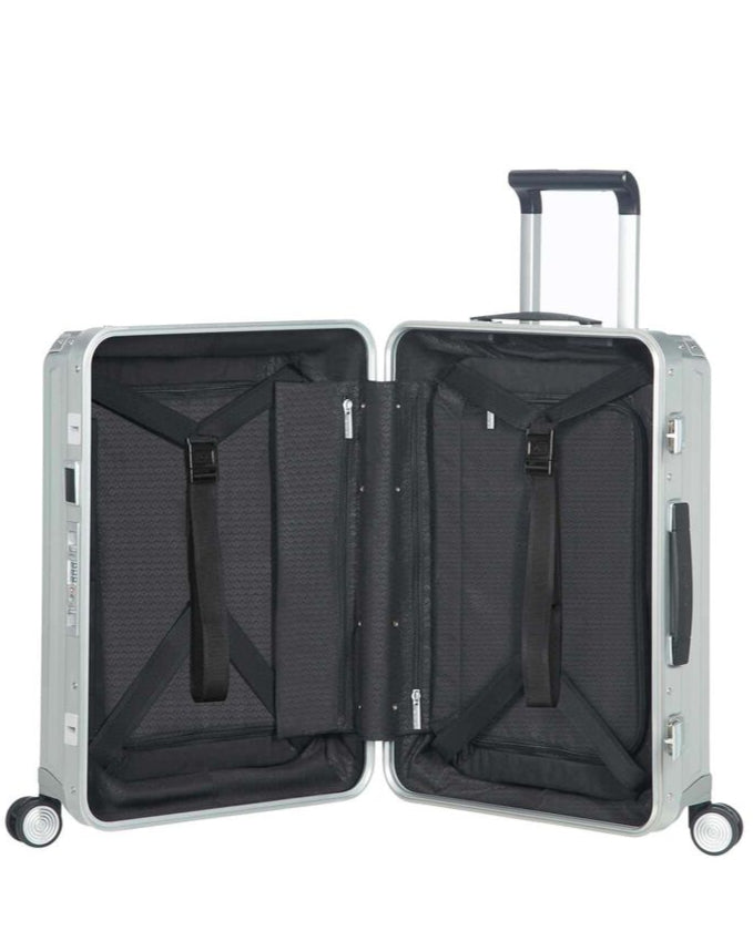 Ease of mind is ensured with our new locks with integrated TSA function. The personalisation tag enables you to quickly customize your case. The spacious interior of Lite-Box Aluminium is tailored to fit your needs and more. Both compartments feature packing straps and removable divider pads, enabling you to pack and compress your belongings carefully. To securely pack your remaining travel essentials, small and large pockets are foreseen, all made out of soft touch, high quality interior lining.
