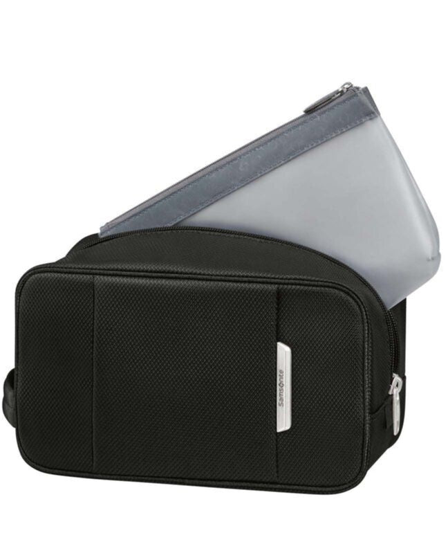 Simplify and streamline your travel experience with our sturdy, sleek Respark Toilet Kit Pouch.  The detachable waterproof pouch is ideal for storing your liquids, and the nickel accents add a touch of elegance. An essential travel companion.