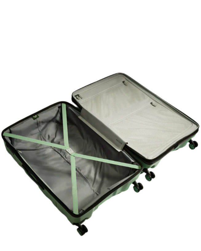 Lincoln is made of a lightweight polypropylene which is known for its inherent flex, to withstand the rough and tumble of travel.