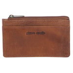 This sleek coin purse is complete with a handy keyring and a zipper for easy access. It's made of genuine leather to keep your essentials secure.