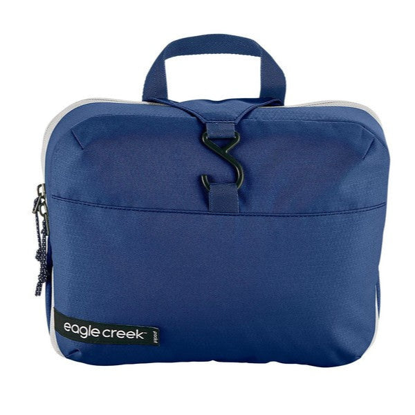 Like a traveling bathroom cabinet, the Pack-It® Hanging Toiletry Kit organizes toiletries and makes them easy to spot and grab. Elastic and zippered pockets secure bottles in place, and dual compartments separate contents. Structured, 100% recycled and water-resistant fabric protects against splashes and accelerates the cleanup of toothpaste or lotion.