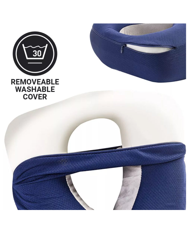 Designed with high density memory foam, this super supportive memory pillow instantly moulds to the contours of your neck for a more personalised fit. Its ergonomic shape is gently tapered at the rear to provide the perfect resting position when sleeping upright. Offering optimum support around the neck, it allows the head to slope back and rest comfortably. A fully adjustable front closure further enhances your sleeping experience, holding your head and neck securely in place to avoid any unexpected movement.