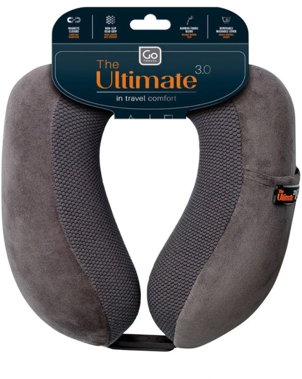 You haven’t experienced travel comfort until you’ve experienced The Ultimate 3.0. A feature-rich memory foam pillow where form and function combine. A clever magnetic closure allows you to choose from three comfort settings – relaxed, cosy, snug. Feel the gentle embrace of uber-soft breathable bamboo fabric that stays cool against your face, all wrapped up in a luxurious buttery velour fabric that is so inviting to the touch. A generous side pocket keeps valuables close-to-hand for reassuring peace of mind and the cover is washable too to keep it pristine. Deluxe memory foam gently conforms to each of your individual contours, while the subtle, rear, non-slip grip secures the pillow and its unique design adds to the rich aesthetic. There’s a reason it’s called The Ultimate…