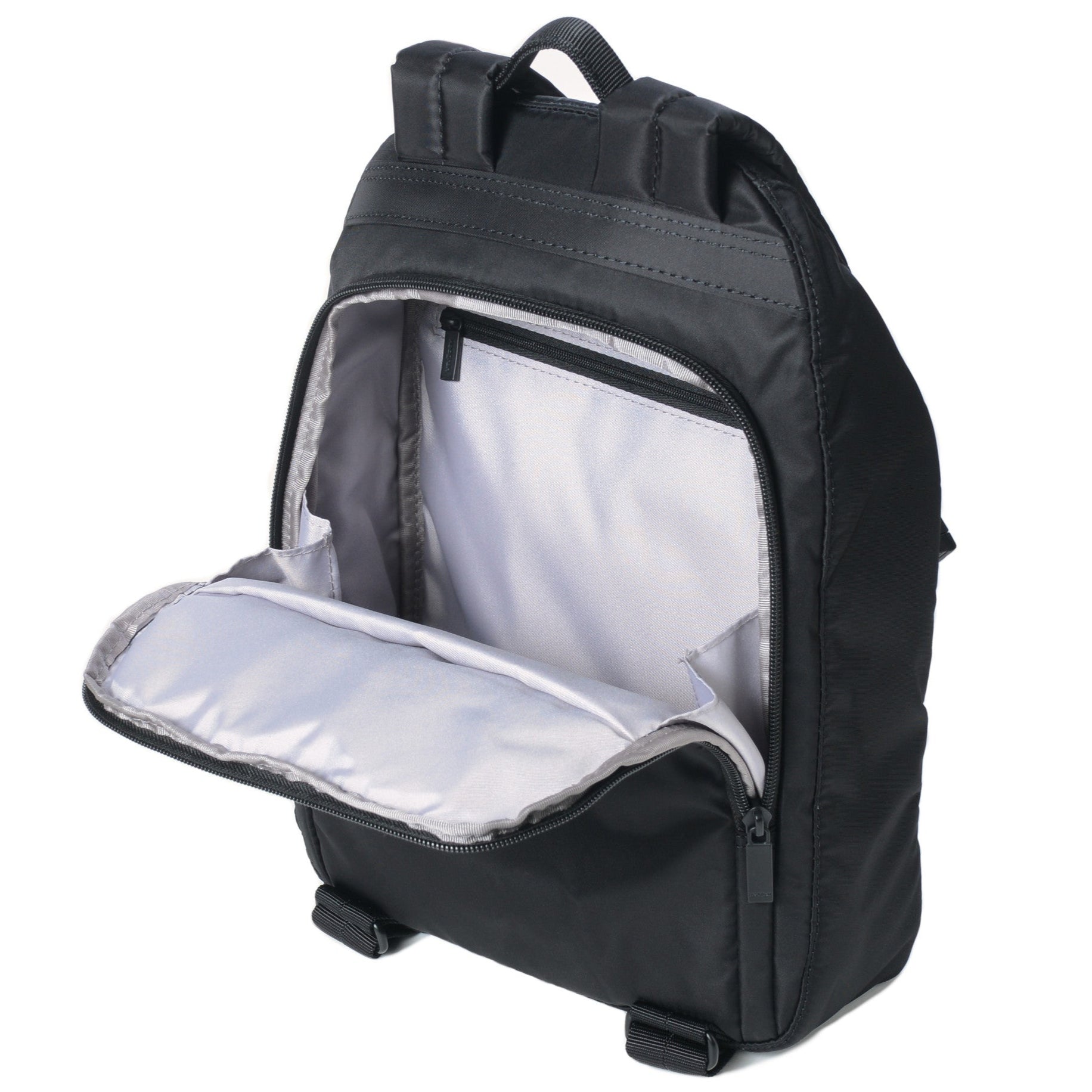 - Main compartment has Safe U shaped zippered closure on the back
