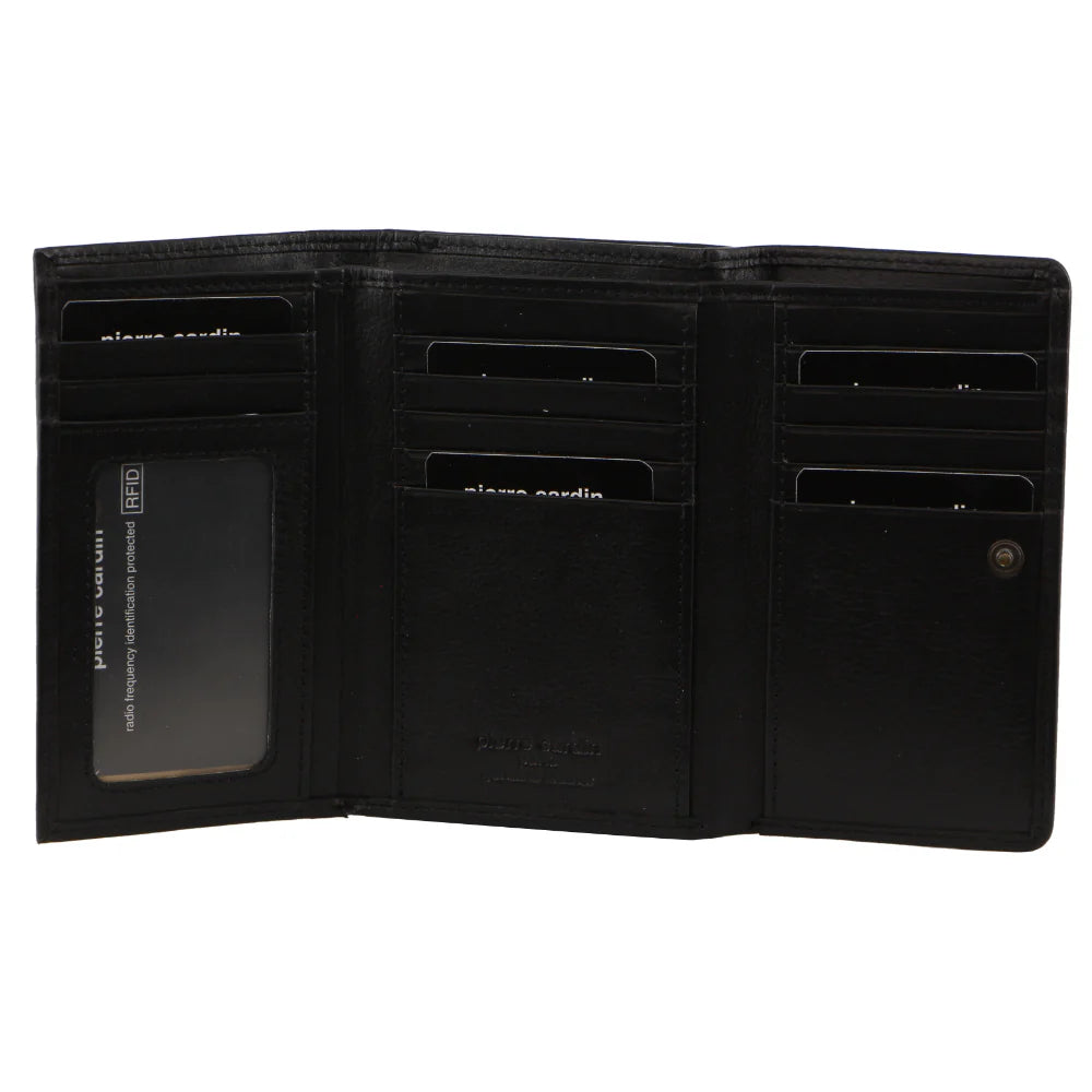 This Pierre Cardin Ladies large Tri-fold Wallet is the perfect combination of practicality and style, with a sleek leather finish and multiple compartments and card slots for all your needs. Compact and organized, it's the ultimate accessory for any fashion-forward individual.