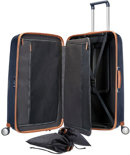 A new luxury version of Samsonite's classic, Lite-Cube. A rich, deluxe suitcase has been achieved through the use of sophisticated leather together with stitching details and a premium colour palette of metallised aluminium Curv with toffee colour accents for a classic elegant look.