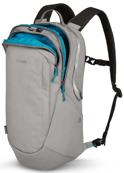 The Pacsafe ECO collection is our most sustainable collection yet. When you need ample storage for your outdoor adventures, this 25L backpack will fit all your gear while making you feel comfortable and supported. Make use of the multiple pockets and separate compartments to keep your belongings organized. The ergonomically-designed shoulder straps offers better support and carrying comfort. The back panel padding was also ergonomically designed to support your back and to create excellent airflow to keep you dry. Stay hydrated on the move with two large water bottle pockets and a compartment for a water bladder or laptop.