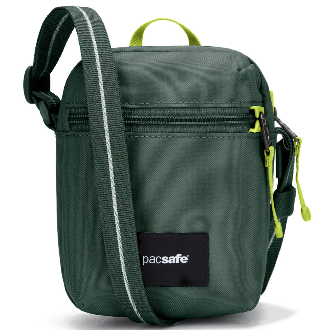 For those moments you prefer going hands-free with just the essentials, this micro-size crossbody will fit just that. This compact crossbody has two perfectly sized compartments that will fit your phone, wallet, keys, sunglasses, and AirPods. It's all secured with easy lockable zippers, an RFID-blocking pocket, and a cut-resistant strap to help protect your valuables while you're on-the-go. This product is made with post-consumer recycled polyester (rPET), equivalent to 5 recycled plastic bottles.