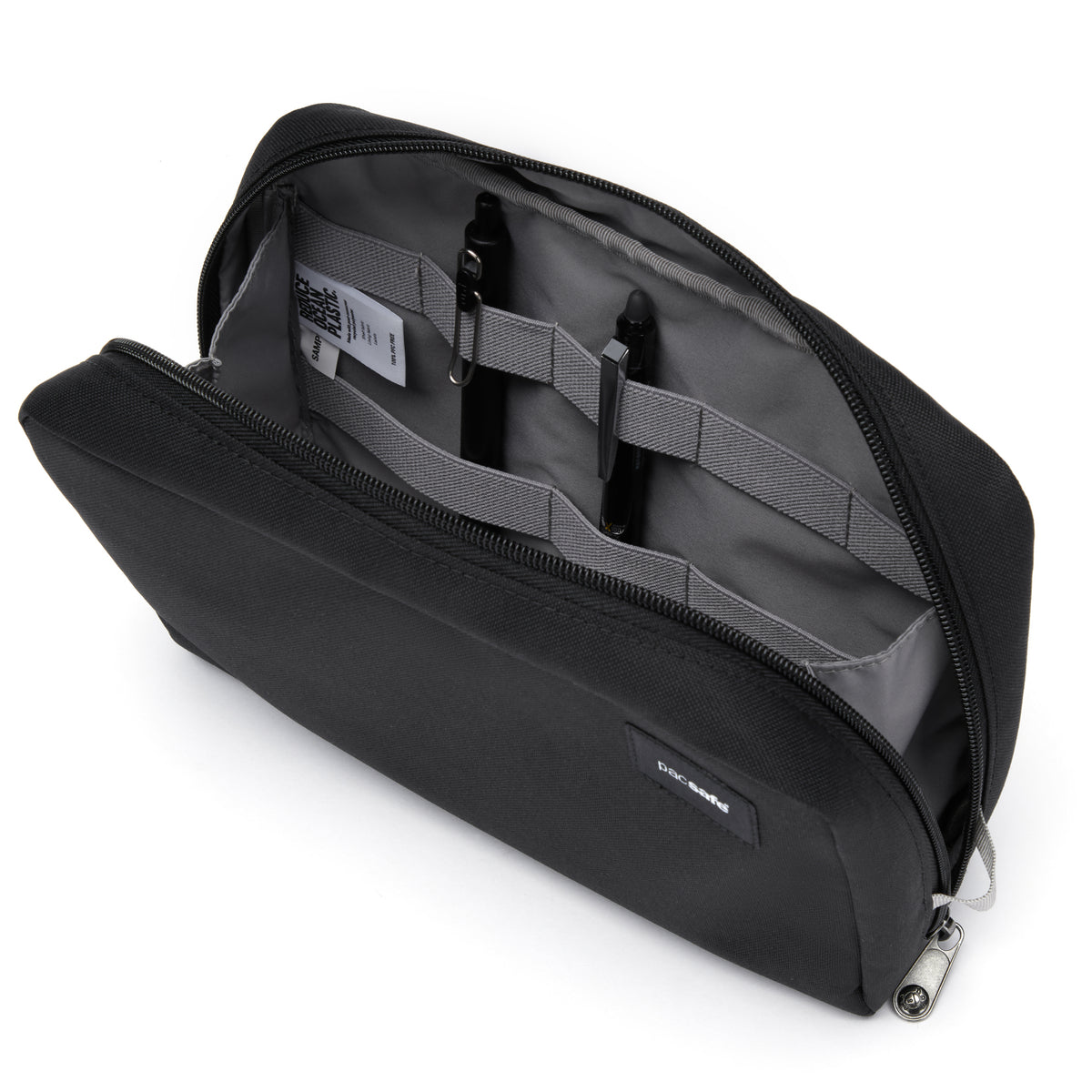 Keep all your travel essentials, phone, gadgets, small tech, and knick-knacks organized and securely stored in one convenient place. The pouch features a dedicated passport pocket with RFID-blocking technology to protect your personal information. Elastic accessory loops provide organized storage for items such as AirPods, portable batteries, chargers, and cables. Add one of our versatile security straps, like the cut-resistant lanyard, to instantly transform this gear pouch into an anti-theft crossbody bag.