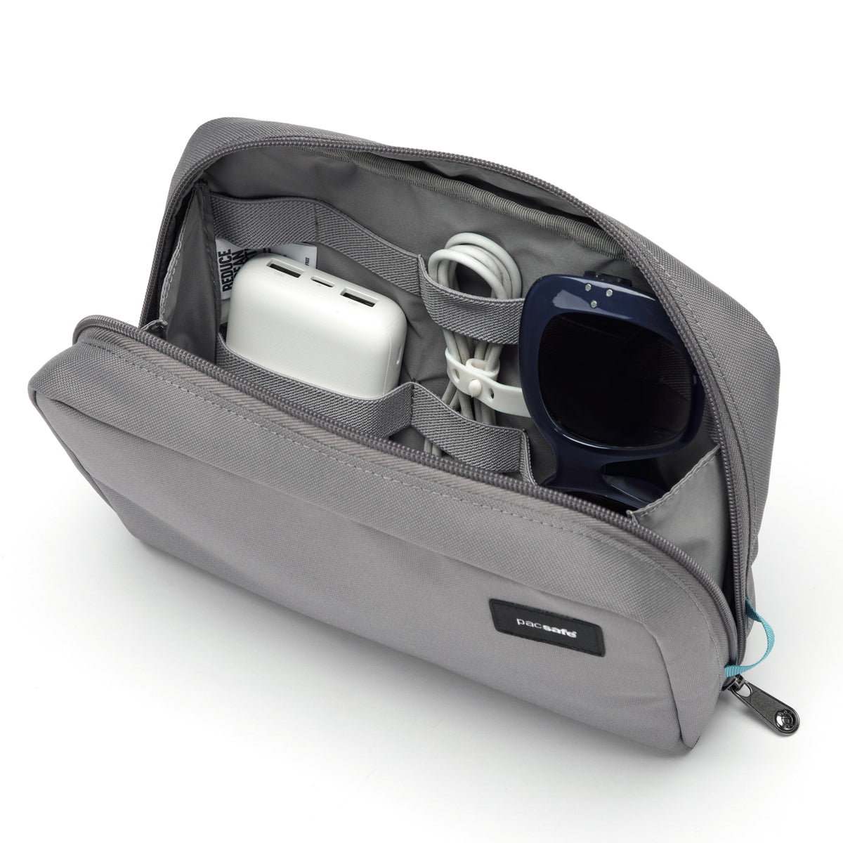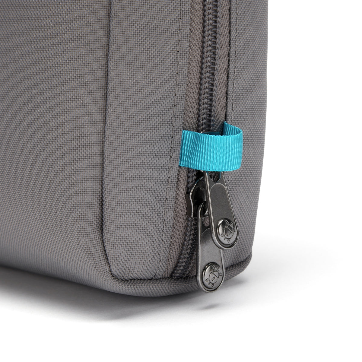 Keep all your travel essentials, phone, gadgets, small tech, and knick-knacks organized and securely stored in one convenient place. The pouch features a dedicated passport pocket with RFID-blocking technology to protect your personal information. Elastic accessory loops provide organized storage for items such as AirPods, portable batteries, chargers, and cables. Add one of our versatile security straps, like the cut-resistant lanyard, to instantly transform this gear pouch into an anti-theft crossbody bag.