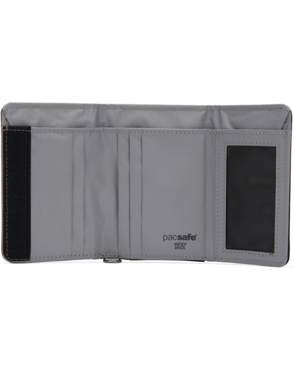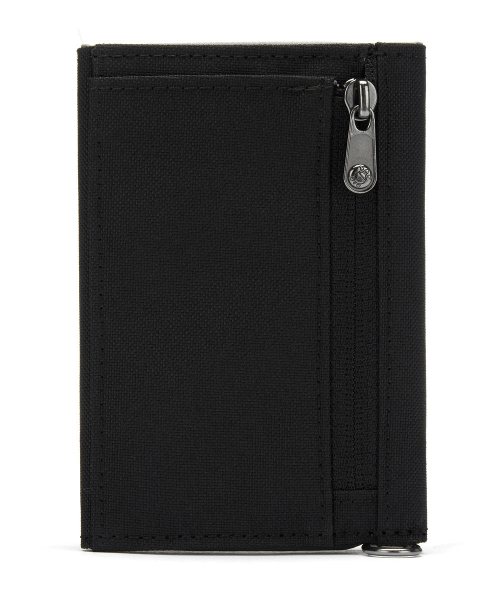 The slim trifold that fits all currencies and offers RFID blocking protection for your credit cards. A velcro closure keeps things shut safe, a coin pocket sorts your change, while an attachment point for a cut-resistant strap (sold separately) adds another layer of protection. Made with 2 recycled plastic bottles.