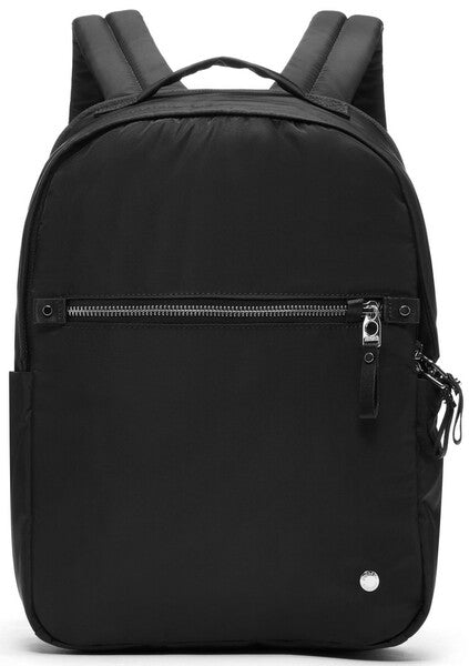 This anti-theft backpack is thoughtfully designed to cater to the needs of modern travelers on the go. Discretion and functionality are key features of this backpack. The secure and separate laptop compartment, designed to fit a 13-inch MacBook, ensures a safe and hassle-free transit through airport checkpoints. The spacious front compartment offers ample room to store all your essentials, from notebooks and chargers to a makeup bag and more. Plus, there's a large RFID-blocking pocket dedicated to accommodating longer wallets. With enhanced anti-theft technology, including cut-resistant materials, lockable zippers, RFID-blocking features, and a detachable anchor strap, this backpack ensures the utmost protection for your belongings.