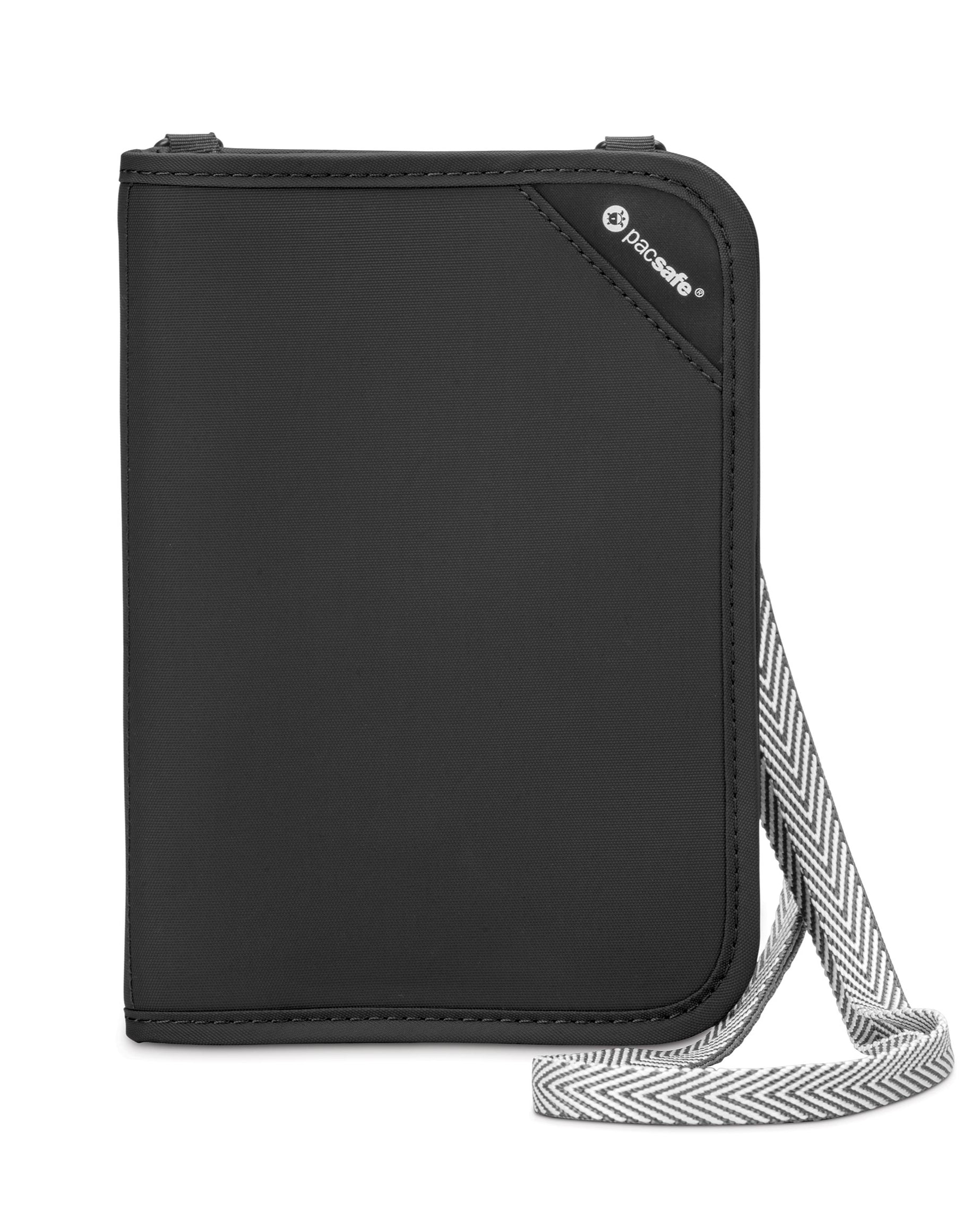 Organize your cash, cards and passport with the RFIDsafe V150 anti-theft RFID blocking compact organizer. It has 6 cards slots, zippered note slot, mesh passport holder, boarding pass slip pocket and pen holder.