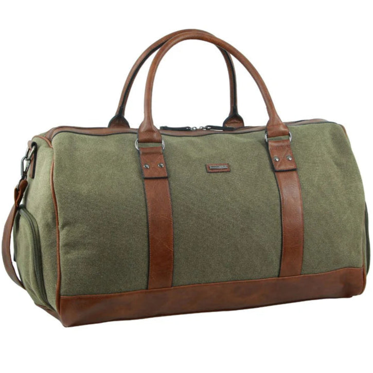 Experience both practicality and style with the Pierre Cardin Canvas overnight duffle. Great for weekends away, this duffle offers a spacious interior and durable canvas material. Perfect for any traveler seeking convenience and quality.