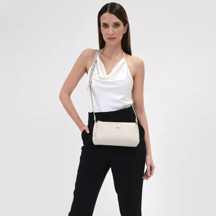 Crafted for those seeking a touch of contemporary flair in their ensemble, this elegant crossbody handbag boasts a stunning combination of modern and polished features.