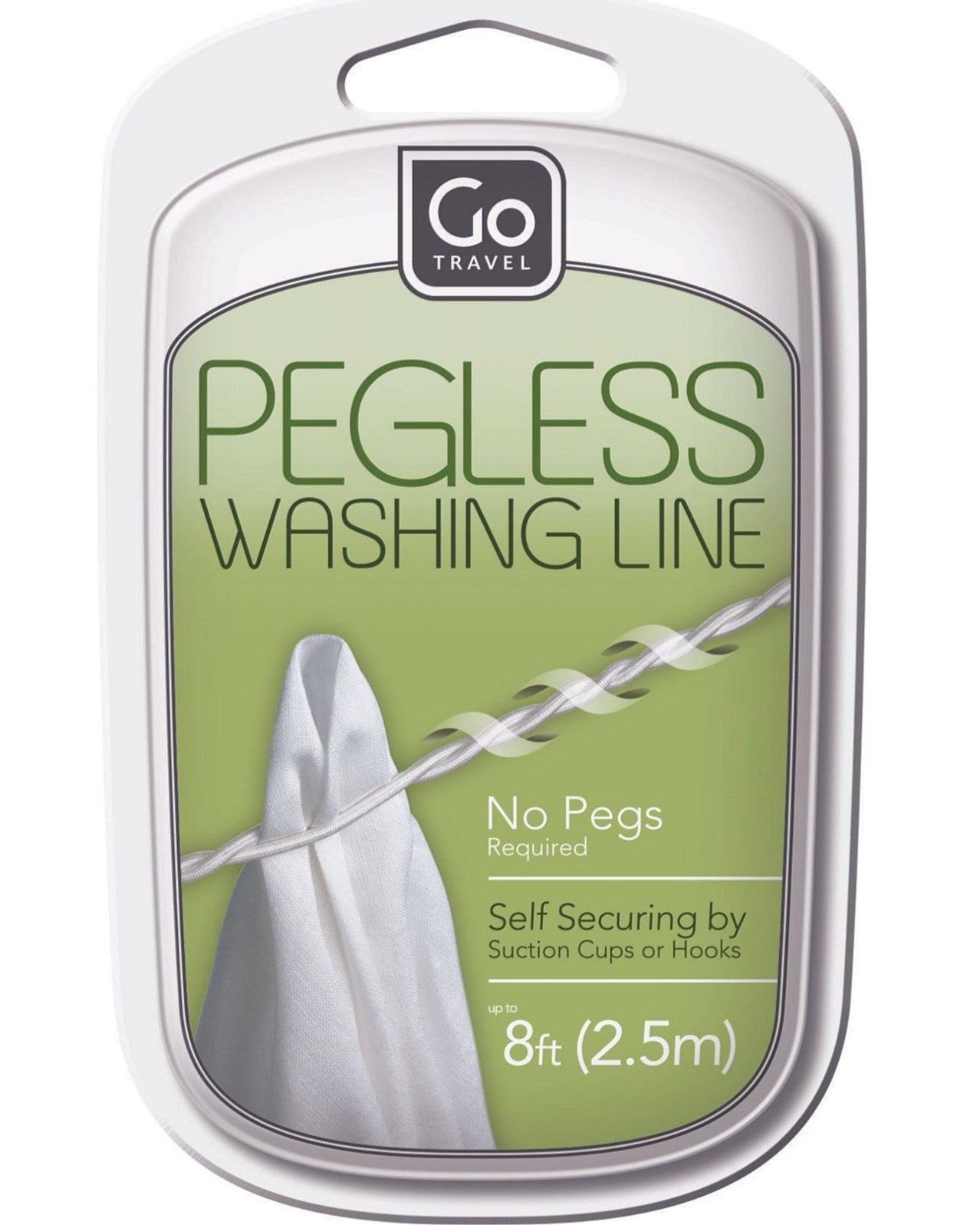 Leave the peg bag at home with this ultra convenient travel clothes line. Easy to hang anywhere, the rubber suction cups at either end of the washing line fix to most hard surfaces. Clothes are simple to secure using the unique 'twist' design, and at 2.5m in length, there is ample room for all your laundry.