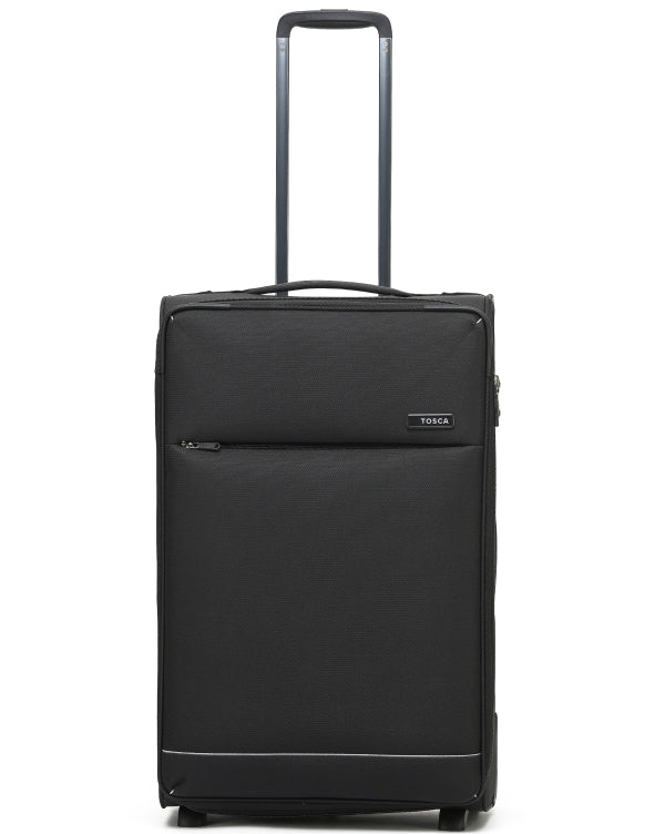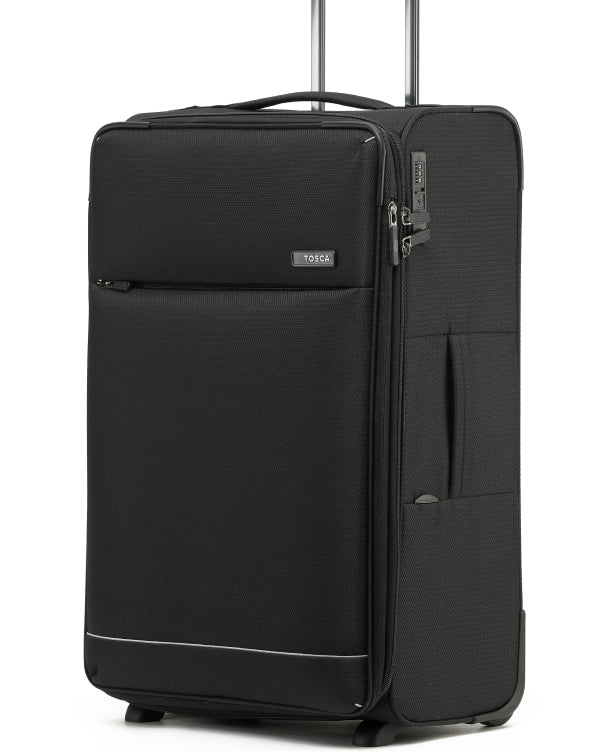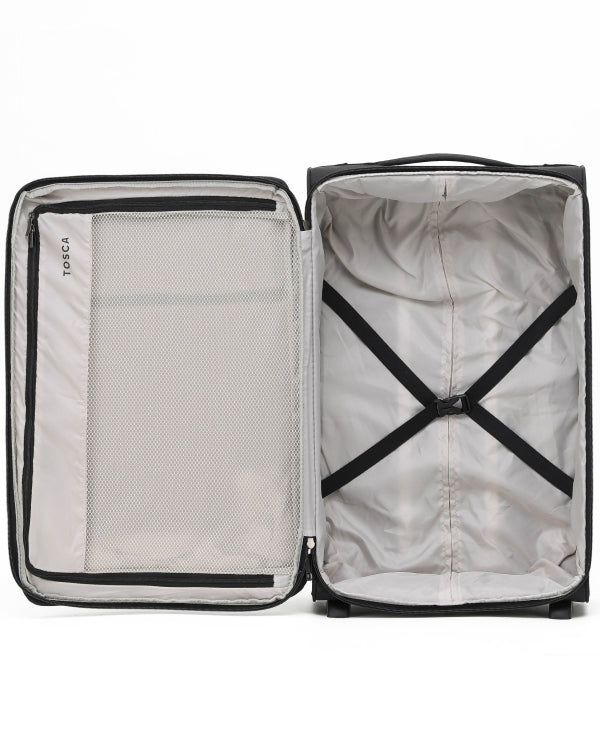 Experience the ultimate in lightweight travel with the TOSCA So Lite Carry On. This innovative carry-on is feather-light and sturdy, with an expander system and internal RFID pocket for convenience and security. The rear smart sleeve allows for easy attachment to a suitcase or trolley. Ideal for the modern traveller.
