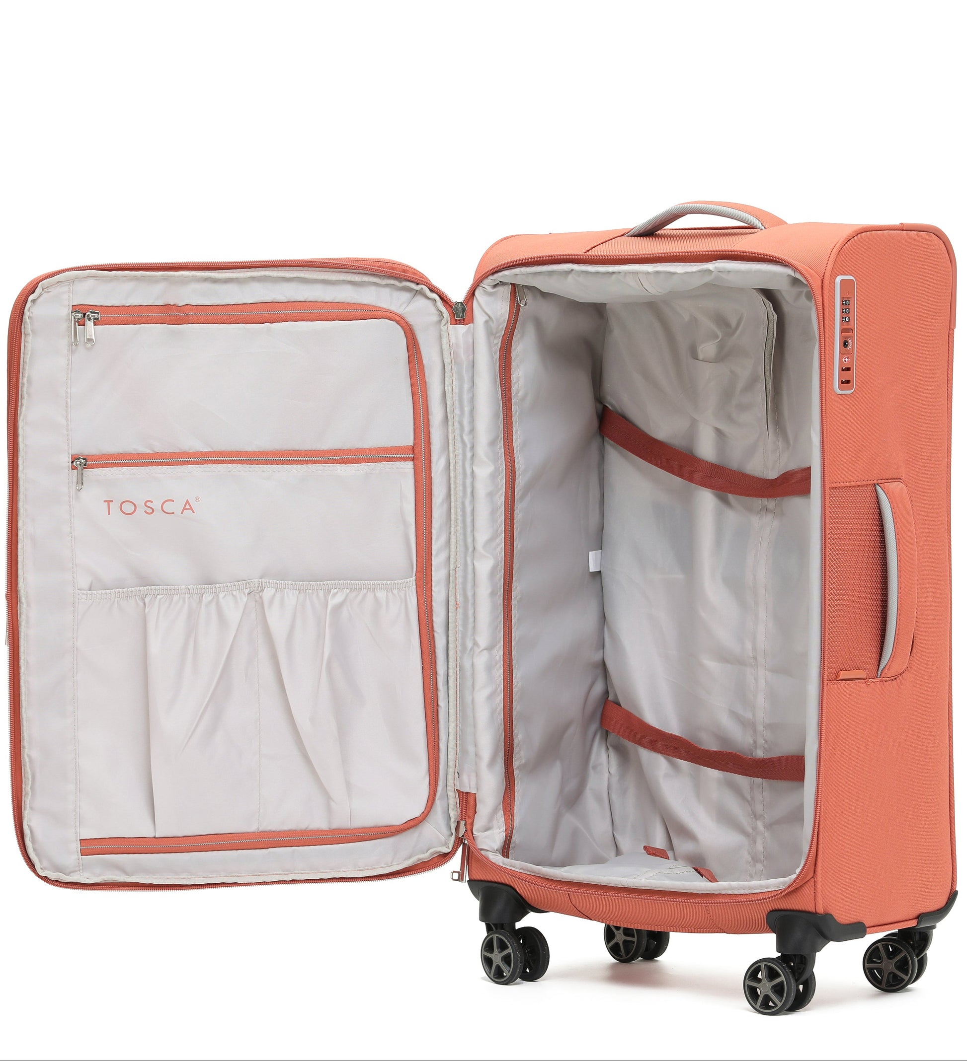 Meet the Vega Large Luggage Case: sustainable, stylish, and functional. Made from recycled materials, it reduces waste and shows your environmental commitment. Its lightweight design offers more packing space without exceeding airline restrictions, making travel smoother and easier.