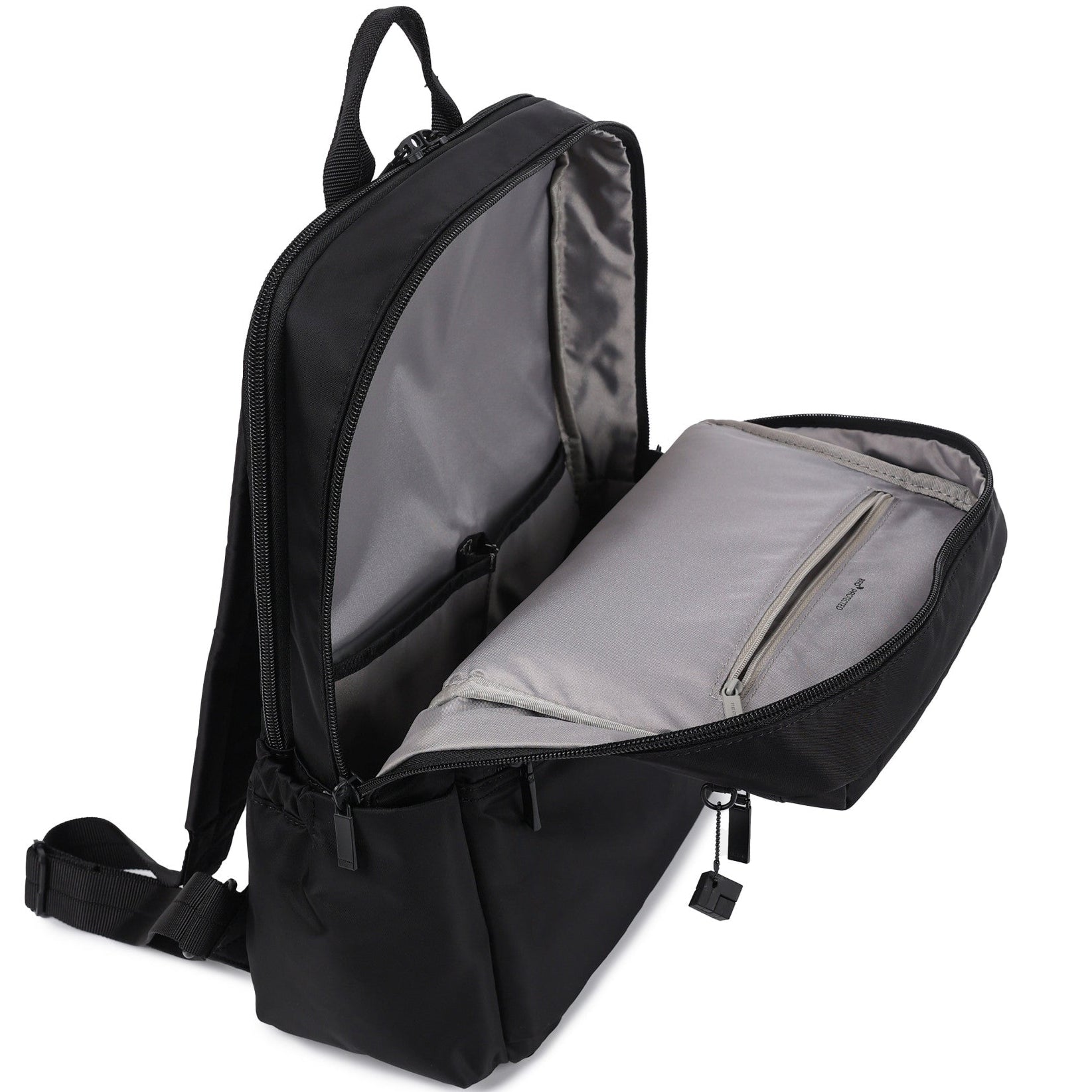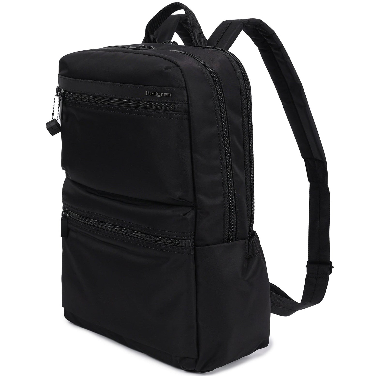 This sleek, sophisticated bag features crisp, clean lines that work perfectly with your minimalist look. The signature Hedgren cube and tone-on-tone hardware complete the elegant design perfectly. But it’s what’s on the inside that counts. This water-resistant backpack features a padded laptop compartment, with space for your A4 files, and a dedicated pocket for your phone. There is a secure RFID pocket, as well as a side pocket for your water bottles, and a fob for your keys. Locked zippers allow you to confidently carry your prized possessions on your back.