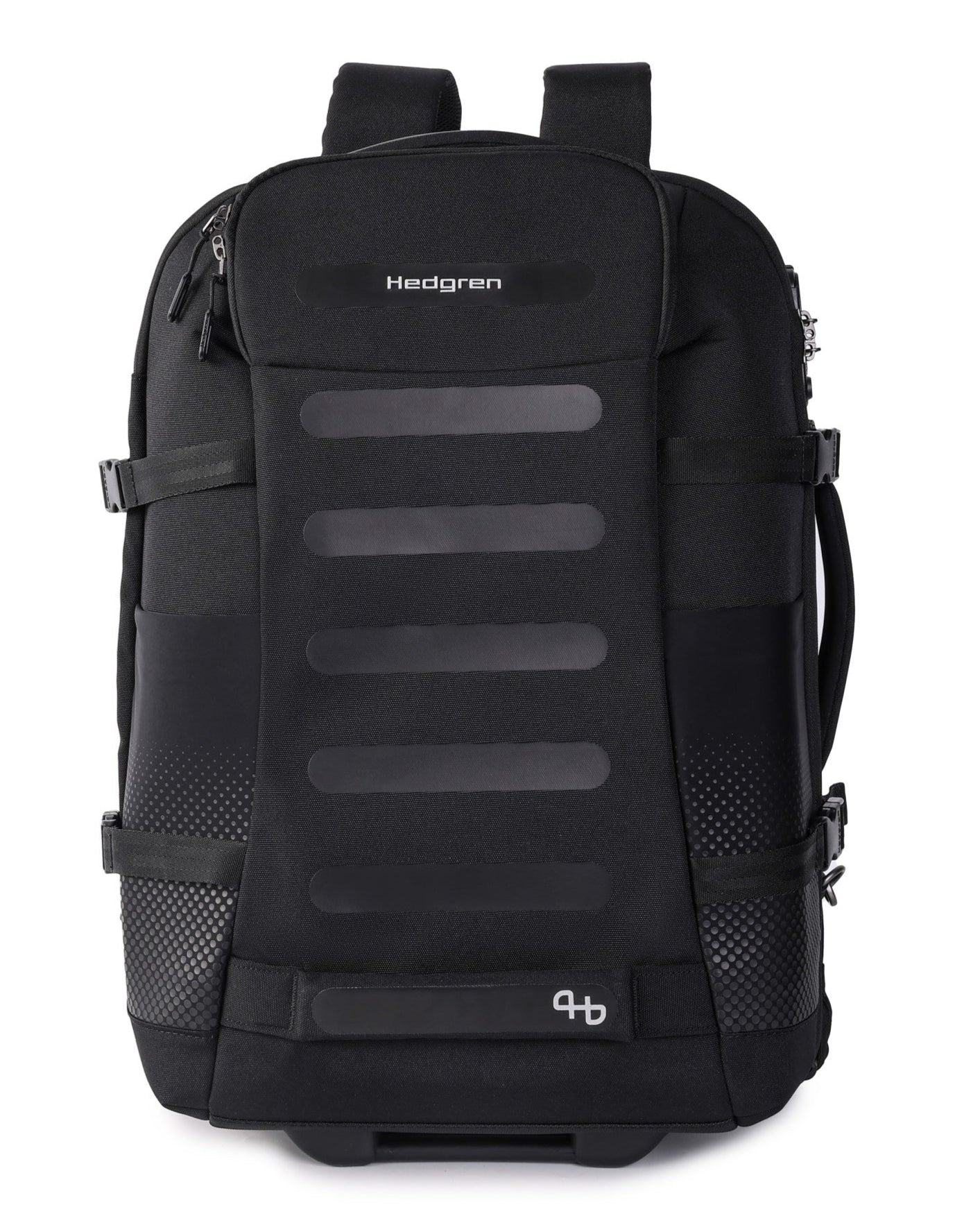 Hedgren Comby MULTY Backpack with Wheels. With two wheels and a hidden telescopic trolley system, this backpack transforms into a convenient trolley for easy transport. The durable material ensures a reliable and loyal companion for all your travels. A must-have for any savvy traveler.