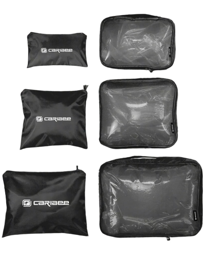 Stay organised and travel in style with the ultimate 6pc Packing Cube and Travel Pouch set by Caribee. Made from premium materials, the various sized cubes and zip pouches allow you to optimise your luggage space, organisation and improve packing time. Ideal for socks, underwear, accessories, shirts, pants, dresses, etc