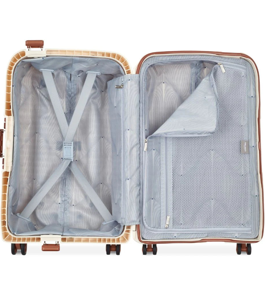 The DELSEY MONCEY range of zipless hard sided luggage is incredibly secure and robust and will protect your belongings from any impact. Made of 100% polypropylene, the most impact-resistant material, this collection’s suitcases close with a framework fastening and a TSA combination lock. The incredibly practical interior layout of this collection make it a must-have for any globetrotter!
