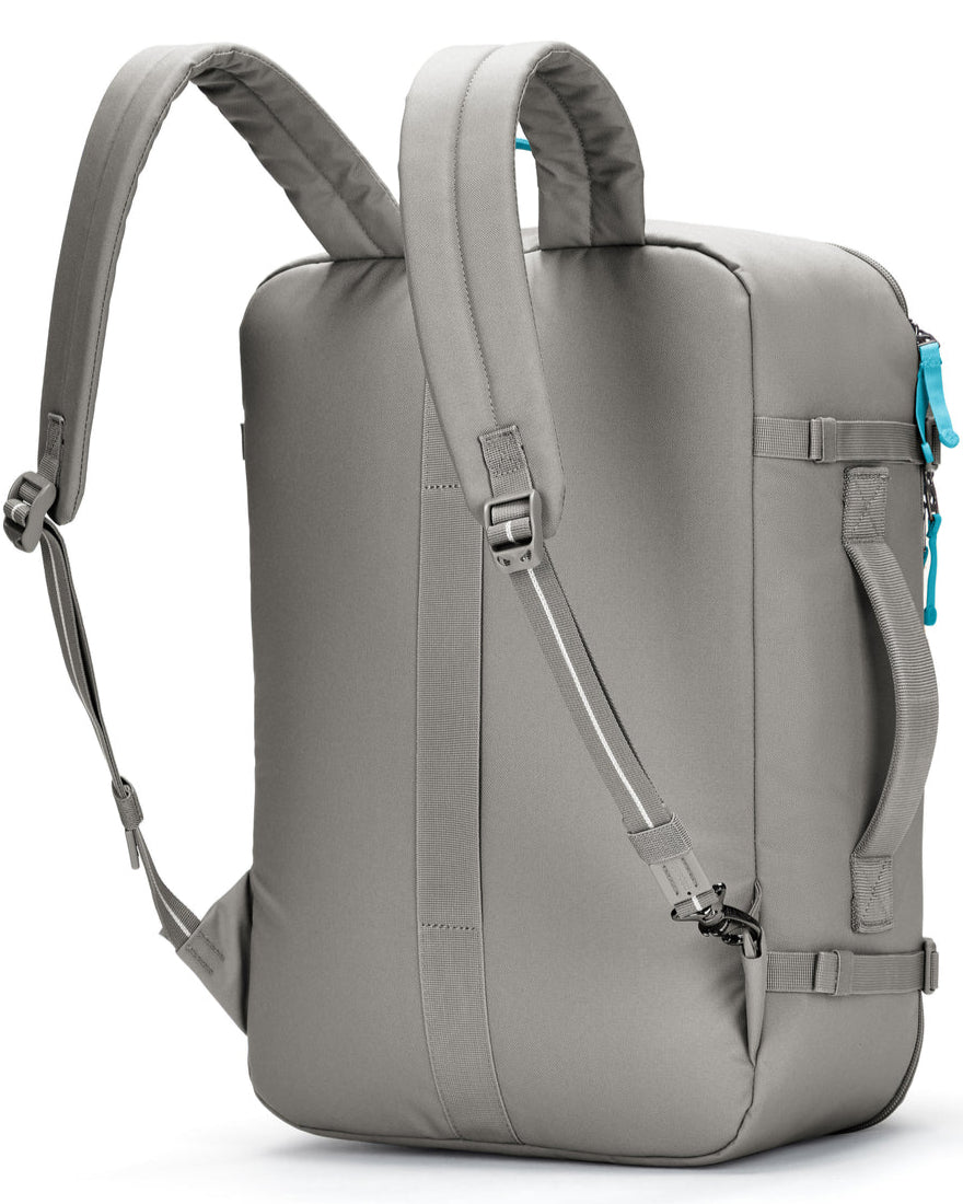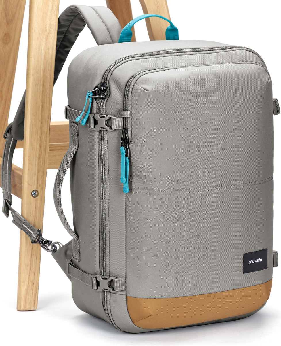 With 34L of capacity, this backpack offers enough storage for spontaneous travels but it's also suitable for day-to-day use. The lockable main compartment can open up like a suitcase for easy packing and access. There's also a sturdy side handle so it can be carried like a suitcase and side compression straps to help stabilize the bag when it's not full. Keep your travel documents and essentials that you frequently reach for in the conveniently placed outer pocket, secured with an easy to use zip tab to deter pickpockets. This product is made with post-consumer recycled polyester (rPET), equivalent to 28 recycled plastic bottles.