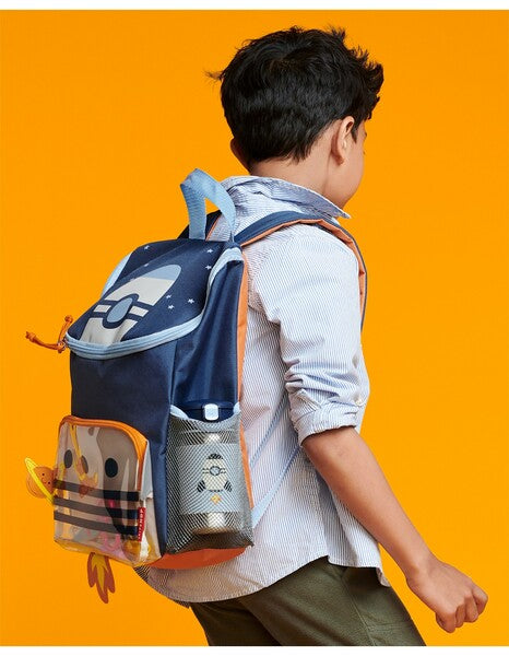 At last a larger sized Skip Hop Zoo friends backpack. Sized just right for school folders, supplies, a lunch bag (and more!) Our cute big kid backpack fits all the essentials your toddler needs for the classroom and beyond. A wide, easy-access opening plus a clear front pocket make it a cinch to pack and grab necessities, while the mesh bottle pocket keeps drinks handy.